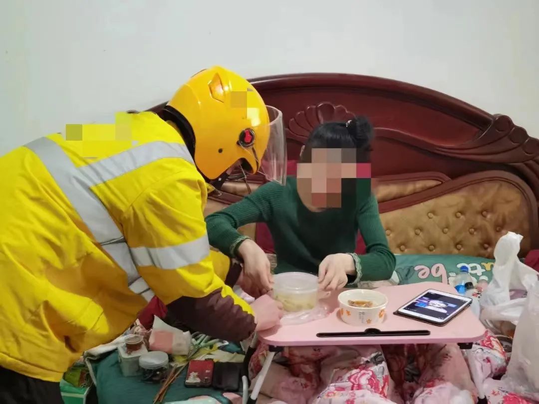 今年33岁的计女士,7年前因病导致行动不便。家人有时忙于工作、照看孩子,送饭不及时,计女士就通过手机叫餐。从那时开始,每次接到计女士的单子,叶阳辉都会细心地照顾她用餐。