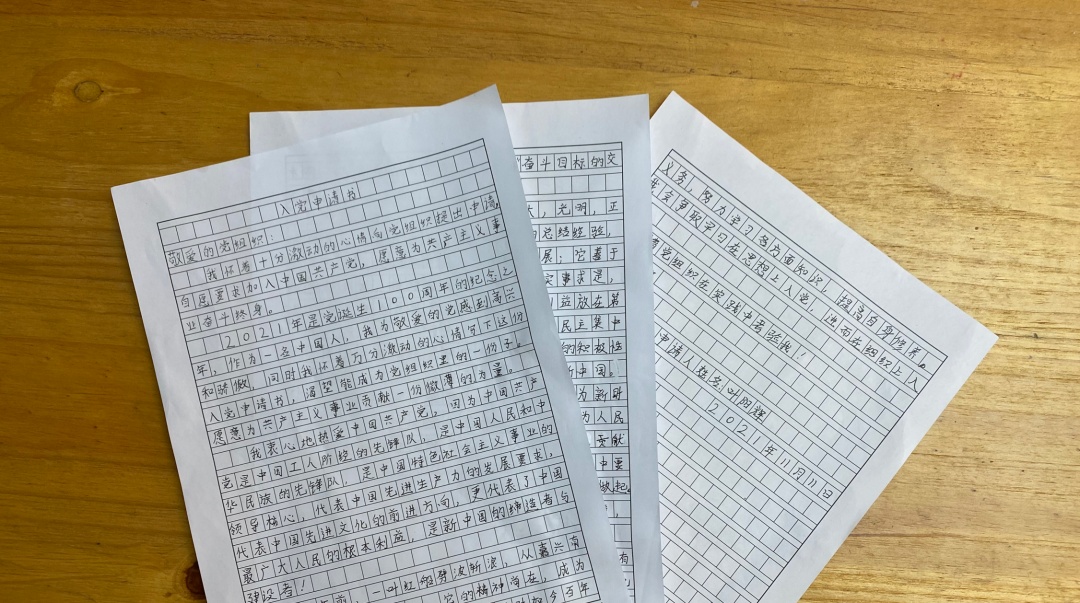 叶阳辉的入党申请书(沈鹏阳 摄)