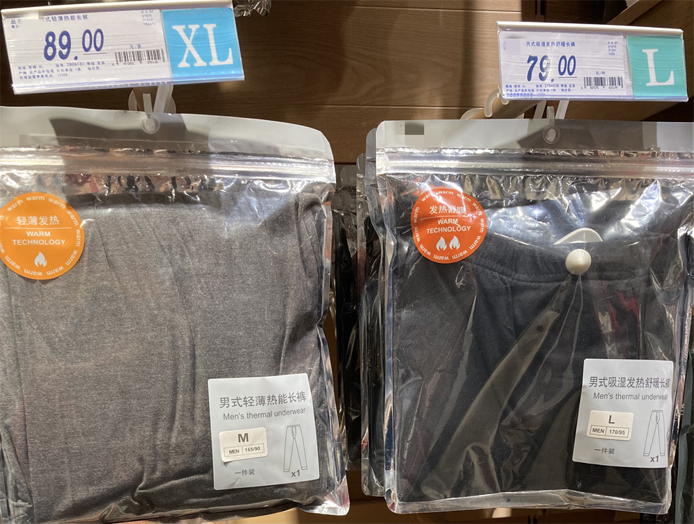 在线下,记者走进大润发(大宁国际商业广场店)发现,这些发热内衣品牌众多、款式各异,面料更是五花八门,价格也在几十元至几百元不等。