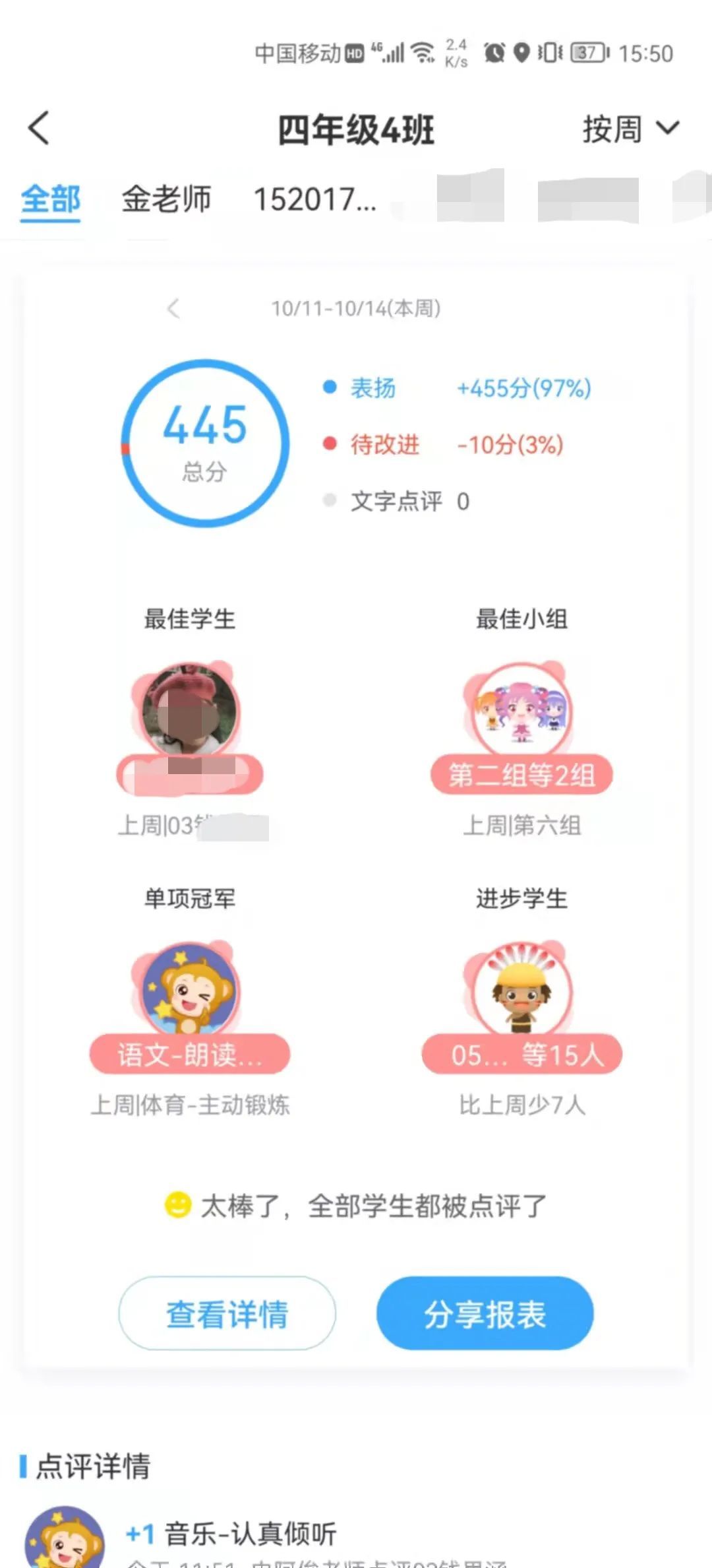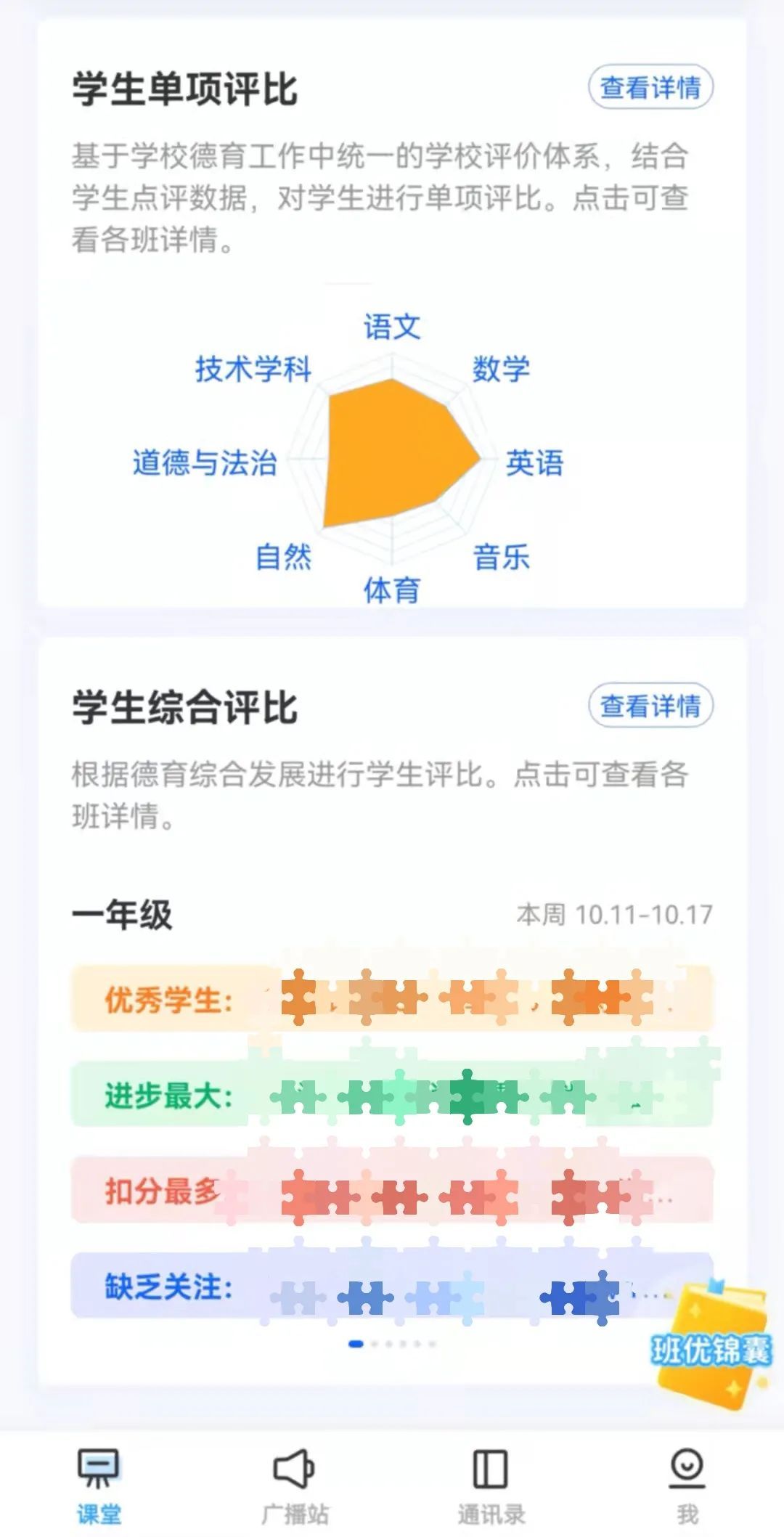 老师可以随时掏出手机,用APP对学生进行个性化、过程化评价。APP会显示近期的优秀学生、进步最大的学生、扣分最多的学生,还会提醒教师近期缺乏关注的学生有哪些,让教育带上“数字智慧”的温度。