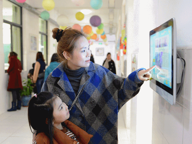 在宝虹小学每个班级的门口,都有一块电子班牌,课程表、班级荣誉、活动通知、风采照片以及近期表现优秀的学生“TOP 3”一目了然。不光班牌是电子的,老师们的“备忘录”也是电子的,要给学生行为表现和学校做评价,一个手机就够了。