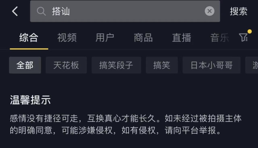 11月21日晚,中国青年报(ID:zqbcyol)搜索关键词“搭讪”发现,有些短视频平台添加了温馨提示:如未经过被拍摄主体的明确同意,可能涉嫌侵权,如有侵权,请向平台举报。