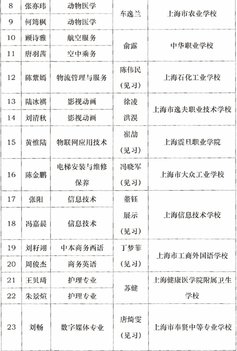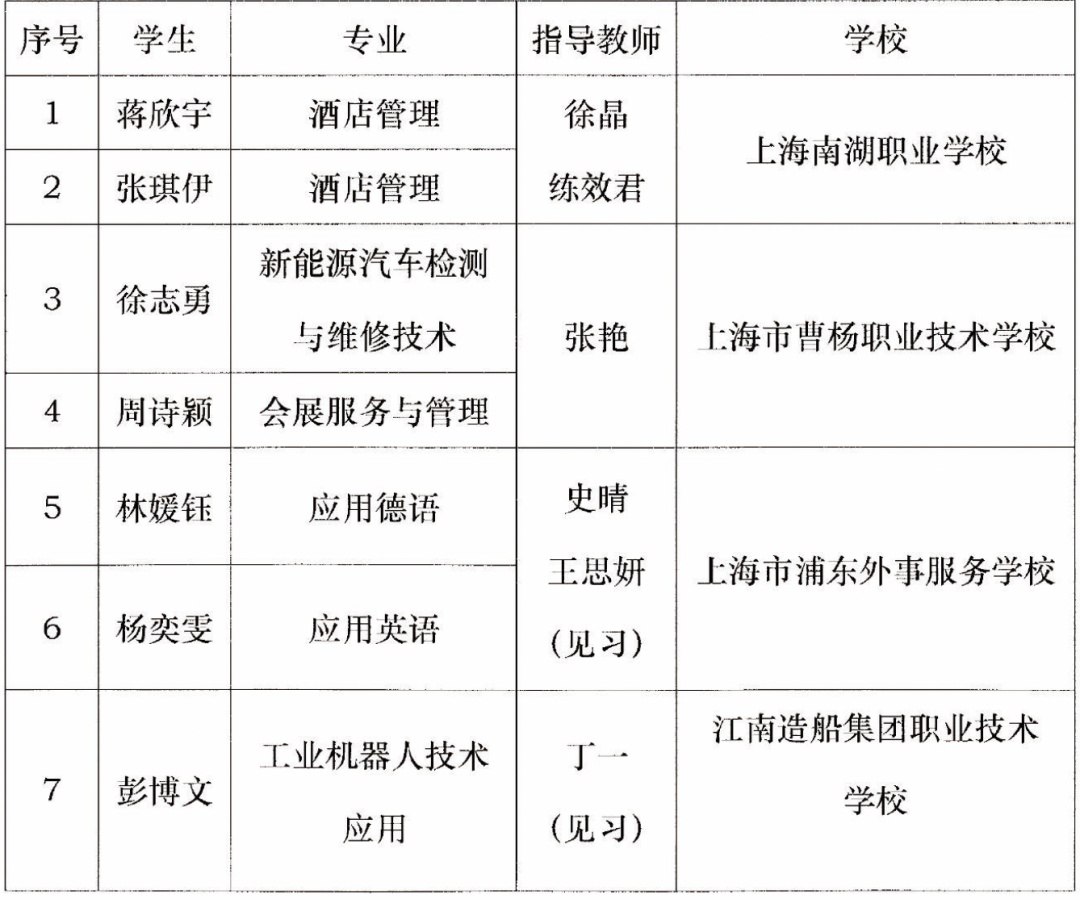 经过笔试、面试和评审合议,确定蒋欣宇等40名学生为上海市中职校“星光之约”者团2021级学生记者,确定王思妍等12位老师为上海市中职校“星光之约”记者团见习指导教师,特此公示——