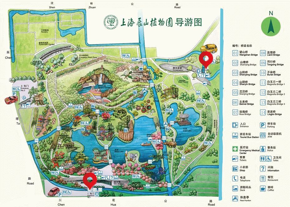 在辰山植物园一号门及二号门游客服务中心免费提供以下服务: