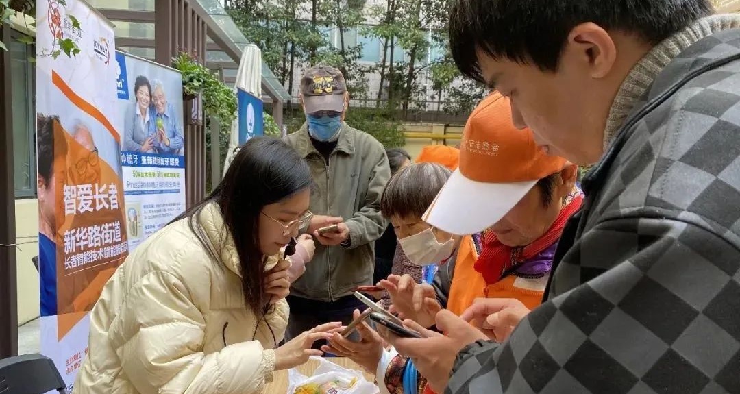 下午2点,刚刚踏进新华路街道综合为老中心的大门,先入眼帘的,就是“惠老通”微信小程序科技助老展位。面带笑容的志愿者正在为社区长者们讲解微信小程序的便捷功能,还分发了宣传使用指导手册,带领长者们跨越数字鸿沟。针对老人们提出的各种手机上网相关问题,工作人员也都一一耐心解答。“‘双十一’年轻人都参与得很起劲,我们老年人也不甘落后,但自己还是有点搞不清楚怎么上网,为老服务中心这个活动真是太贴心了!”居民陈阿姨说道。