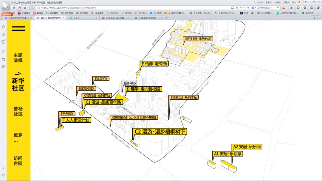 STEP3:以“新华社区”为例,点击进入后显示新华社区核心展示区域和展览点位。