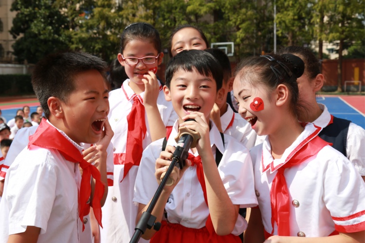 几年前,校方通过调查问卷发现:有一项兴趣特长的学生占92%,有两项以上兴趣特长的占63%。“如何让更多的孩子在校园中展示才华、展现本领?”学校少先队大队策划推出了十大歌手、十大朗读者、十大运动星、十大发现者、十大阅读星、十大演奏家、十大手工王等比赛,而且是“面向所有学生”——只要想参加就能参加;只要愿意站上舞台,学校就为你搭建舞台。