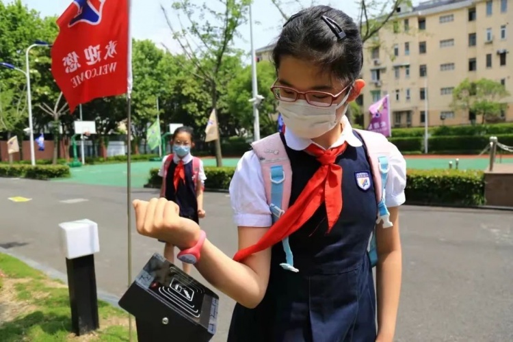 每个上学日,上戏附属新世界实验小学三年级学生王申洋都会戴上一个特制手环。走进校门,他扬起手环在签到机上“扫一扫”,妈妈的手机上便即时跳出一条信息:“您的孩子已安全入校。”洪山校区的学生进入教室时还能在电子班牌上进行“心情打卡”。班主任老师通过手机或者电脑就可查看心情数据汇总,对选了“阴雨绵绵”的孩子及时给予更多关注。
