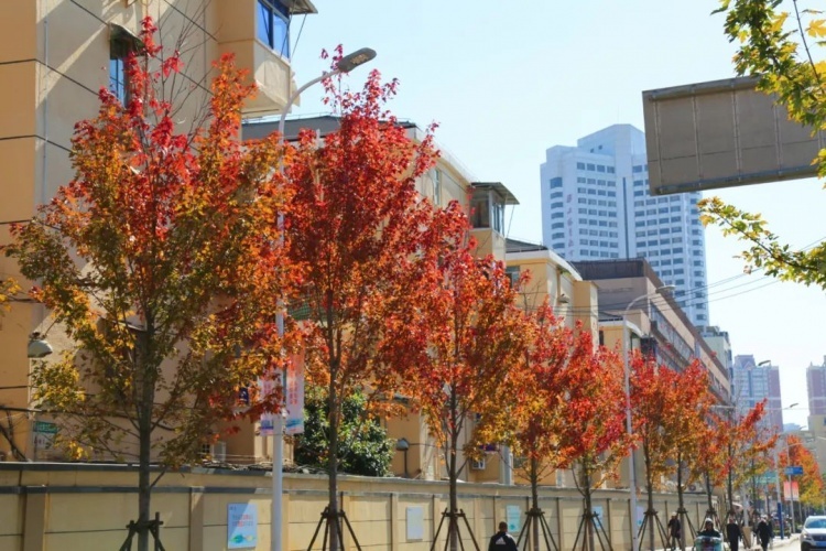 红花槭,又名美国红枫,2004年,上海绿化部门引进红花槭,经过多年栽培试验,适应江南地区的种植有“夕阳红”“十月光辉”“秋烈焰”等红叶效果良好品种。